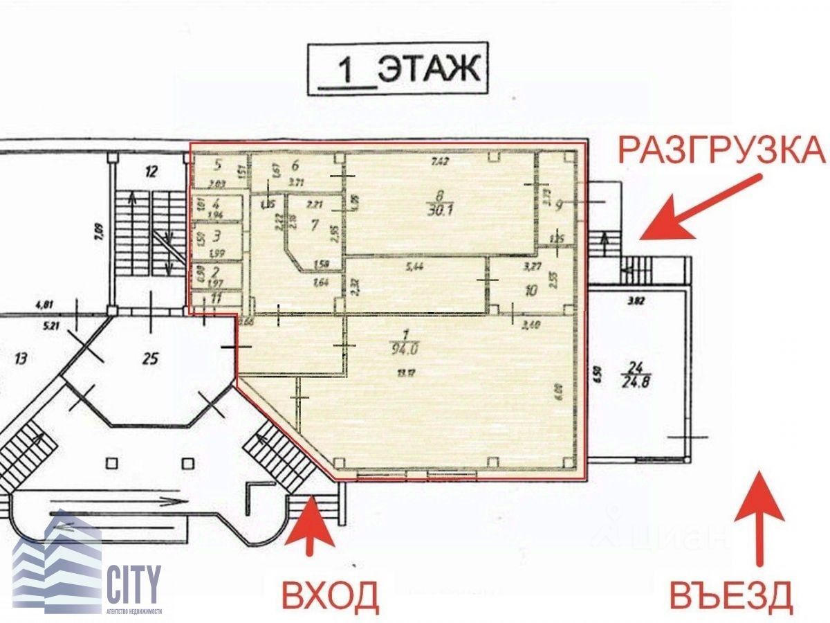 Помещение с ремонтом. Высота потолков 3 метра. Электрическая мощность 15 кВт. Общий центральный вход с улицы с супермаркетом ''Пятерочка''. Есть 2-й выход в огороженный двор - зона погрузки/разгрузки. Возможность размещения рекламной вывески на фасаде. Коммуникации: вода и канализация - городские, отопление - автономное. Парковка перед зданием.