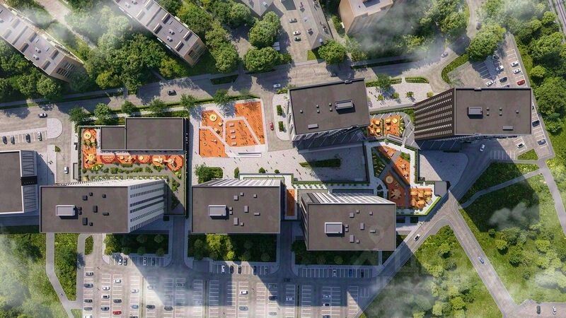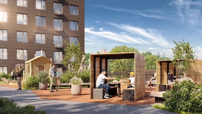 - Зеленый двор без машин, кленовая аллея для прогулок. - Нейродинамические площадки для детей разных возрастов. - Workout зона, столы для пинг-понга, места для занятия йогой.