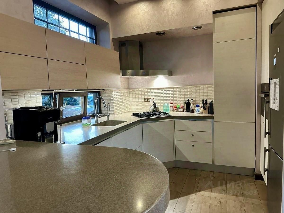 На первом этаже находятся коридор, холл, спальная комната и большой зал с камином и кухонной зоной. санузел с писсуаром, унитазом и душевой кабиной. Мебель итальянская, вся техника Германия (МIЕLЕ). Телевизор Sаmsung 65''. Стиральная машина с сушкой, полноразмерная посудомоечная машина, духовой шкаф, холодильник, фильтр для питьевой воды Цептер.